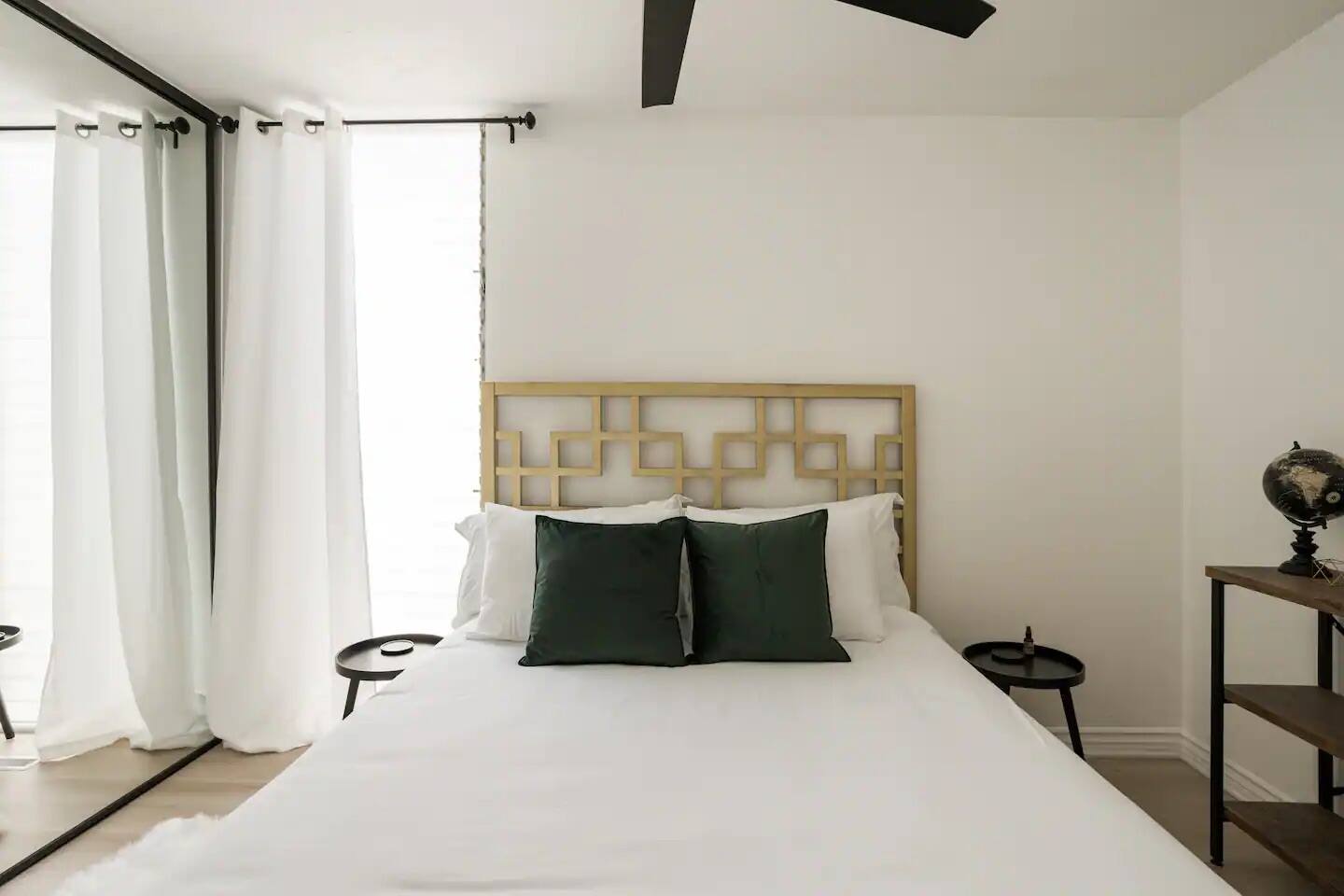 DEN/SECOND BEDROOM: This space is located behind the main living space and features a queen bed, two nightstands, and full size closet. Should you like a bit more privacy in this space, there is a linen room divider and separate entry door in the hall.
