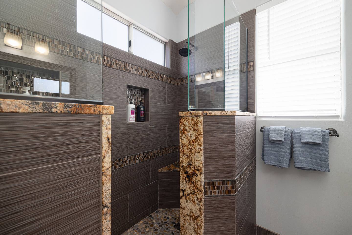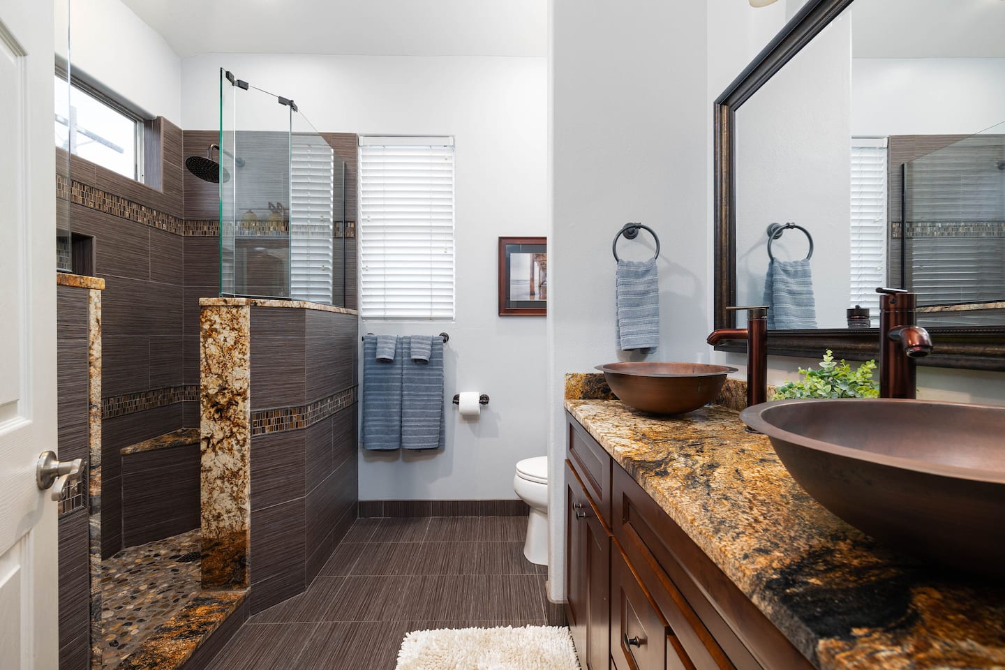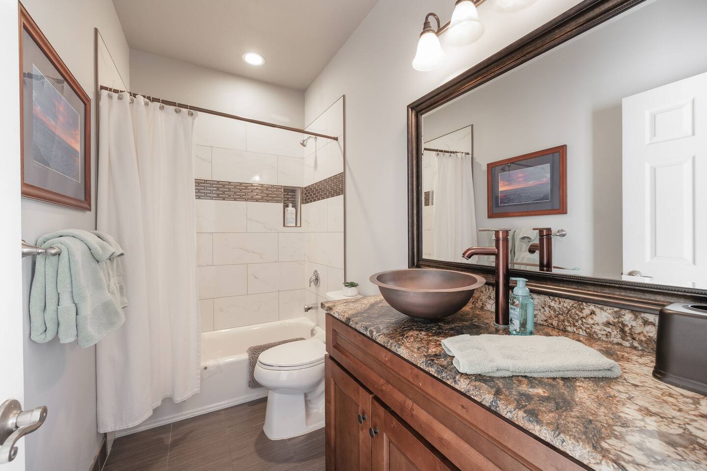 A second full bathroom is conveniently located in the hallway to serve the two additional bedrooms.